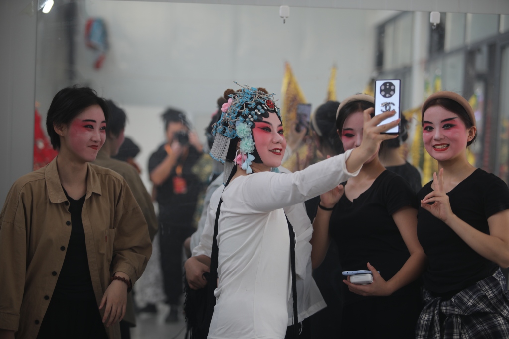 参赛前演员们正在化妆准备工作。马周宁 摄