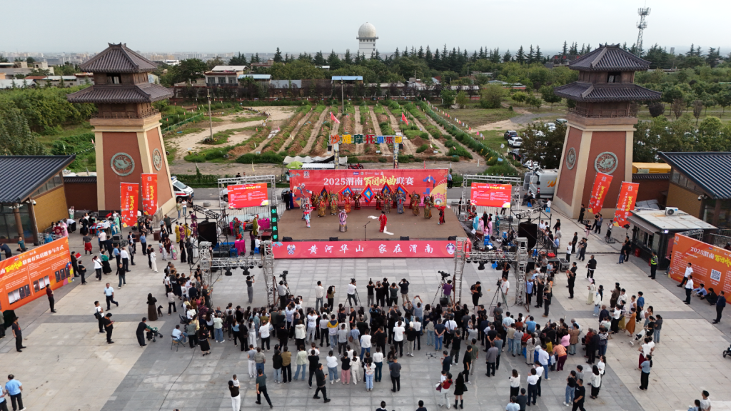 航拍下2025渭南百团戏曲联赛启动仪式现场。马周宁 摄