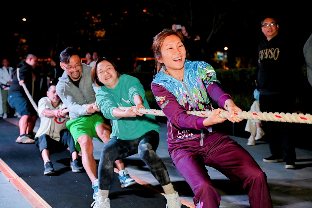 为方便市民参与,比赛特设于傍晚举行,在丰富秋夜生活的同时,也为静安商圈夜经济注入新活力。参赛队伍来源多样,包括企事业单位、社交媒体平台招募及个人报名组成的联队,充分体现全民参与、共建共享的赛事理念。比赛特别设置了百人拔河环节,每天赛程最后一个环节将由当天所有参赛队员分成两队同时进行较量,这样的大场面为每日赛程营造高潮迭起的收尾体验。