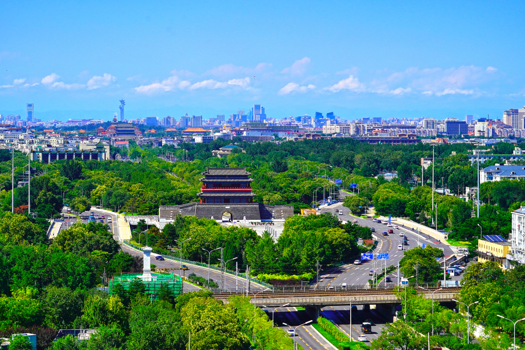 2025年7月29日,北京,中轴线永定门城楼,蓝天白云下美景如画。视觉中国 资料图