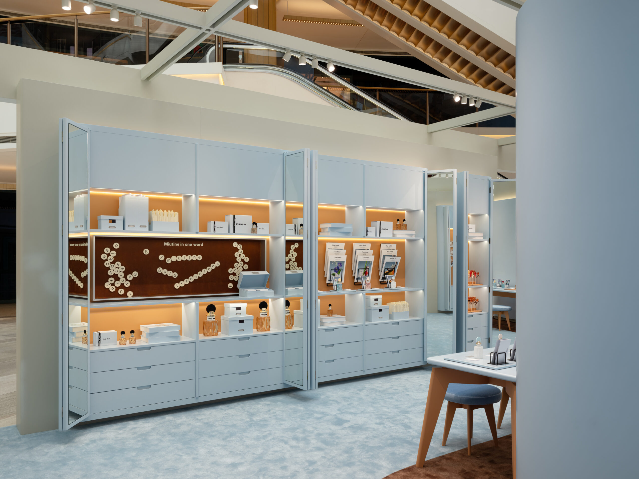 限时精品店以Miu Miu女孩的衣橱为灵感,演绎专属于Miu Miu的随性气质:衣橱不仅存放服饰,亦珍藏着迷人的香氛。品牌标志性Azzurro Blue天蓝色构建限时精品店的核心轮廓,经典系列香气作品陈列其中,开启自在感官创想。