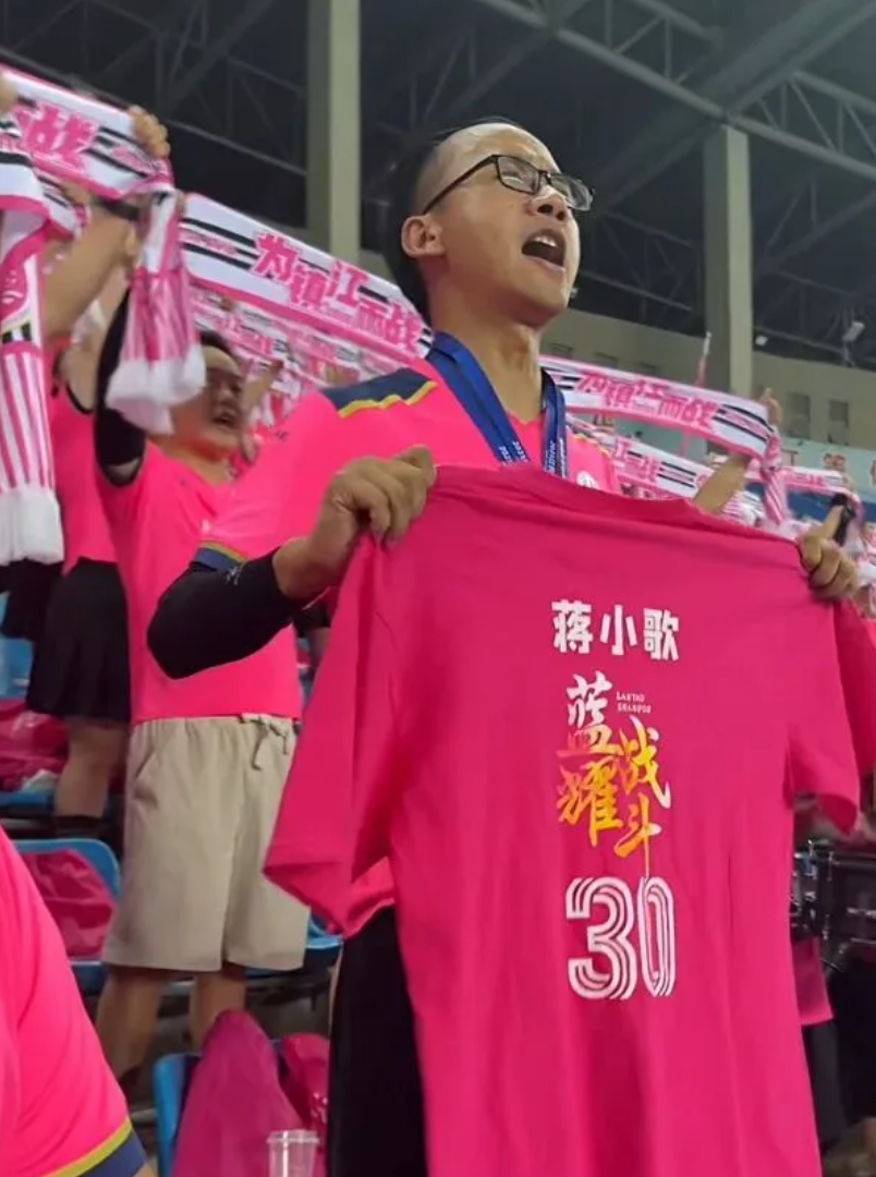 悲伤之中,众多球迷友人带上了他的球衣,将这份思念带进了球场。从揭幕赛至今,每一场镇江队主场的“粉色海洋”看台上,“蒋小歌”的球衣从未缺席。