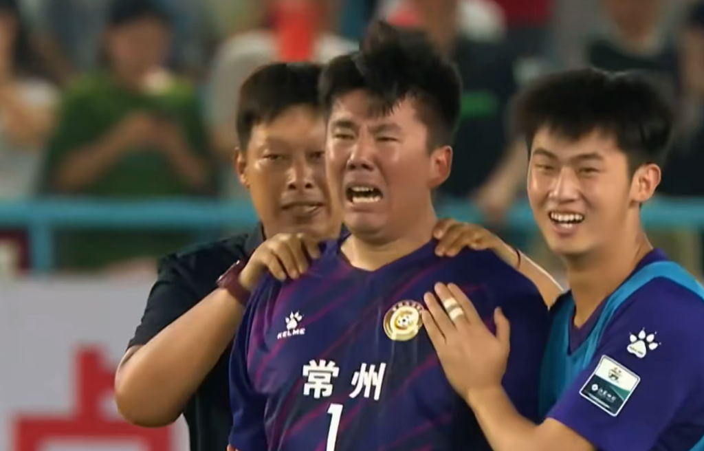 常州队终于进球后,球迷和球员都没忍住激动的泪水。
