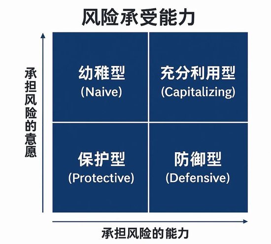 这家机构的顾问,用一个简洁的二维矩阵区分了“风险承受能力”与“风险意愿”:高承受能力却低意愿的人是“防御型”;低承受能力却高意愿的人是“幼稚型”。