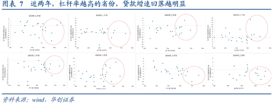 结合我们前期报告《居民债务拆分:谁在去杠杆?》来看,当下居民杠杆率越高的省份,去杠杆的诉求越强。数据拆分发现,2017年~2023年:居民杠杆率高的省份,整体居民信贷增速涨的多跌的少,而居民杠杆率低的省份,其整体居民信贷增速跌的多涨得少。但在2024年和2025年,反而是居民杠杆率更高的省份,居民信贷增速回落更为明显。