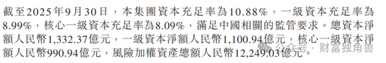值得注意的是,渤海银行截至9月末的资本充足率进一步承压。核心一级资本充足率为8.09%,较上年末下降0.26个百分点;一级资本充足率为8.99%,下降0.31个百分点;资本充足率为10.88%,下降0.75个百分点。这一水平已接近监管底线。
