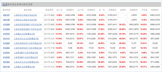 截至目前,陈博在管基金产品合计6只(A/C份额合并计算),在牛市行情下,陈博的6只基金均全线飘红,看起来还不错,然而,即便全线飘红,确实也经不住细看。大多数基金业绩都在行业中尾部。