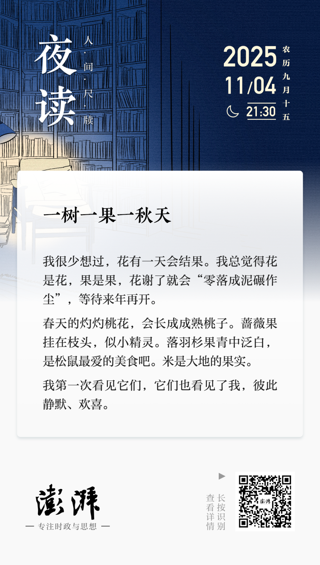 哪怕是最熟悉的事物,你若仔细观察,也会看到它的生命有完整的肌理脉络,有它的春夏秋冬,一树一果一秋天。