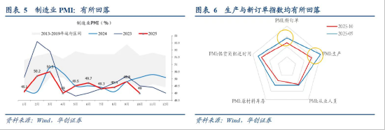 具体来看,10月31日,10月PMI公布(49.0),较前值-0.8,略超季节性回落。分项而言,生产(49.7)、新订单(48.8)拖累最大。生产侧,一方面反内卷持续推进,导致扩产存在压力;另一方面有效需求也较为不足;订单侧,由于10月关税扰动再起,前期抢出口已透支需求,贸易商观望谈判结果情绪浓厚。此外,价格分项继续走弱,表明反内卷效果或有所放缓。我们认为或因下游需求偏弱,难以支撑企业的涨价行为。