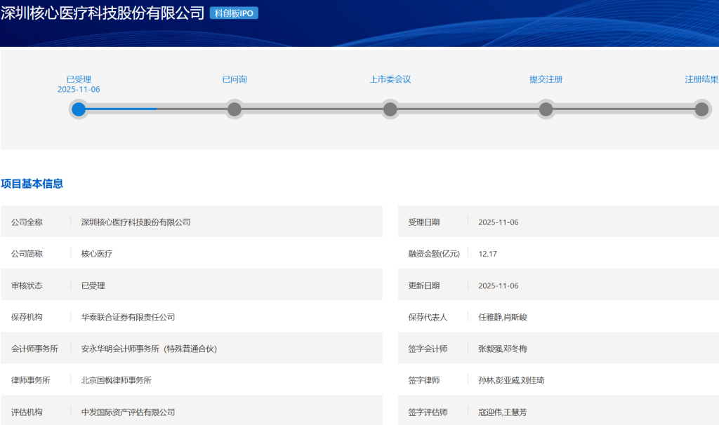 11月6日,上海证券交易所(下称“上交所”)受理了深圳核心医疗科技股份有限公司(以下简称“核心医疗”)的科创板IPO申请。该公司也成为重启科创板第五套上市标准后,首家成功受理的创新医疗器械企业。