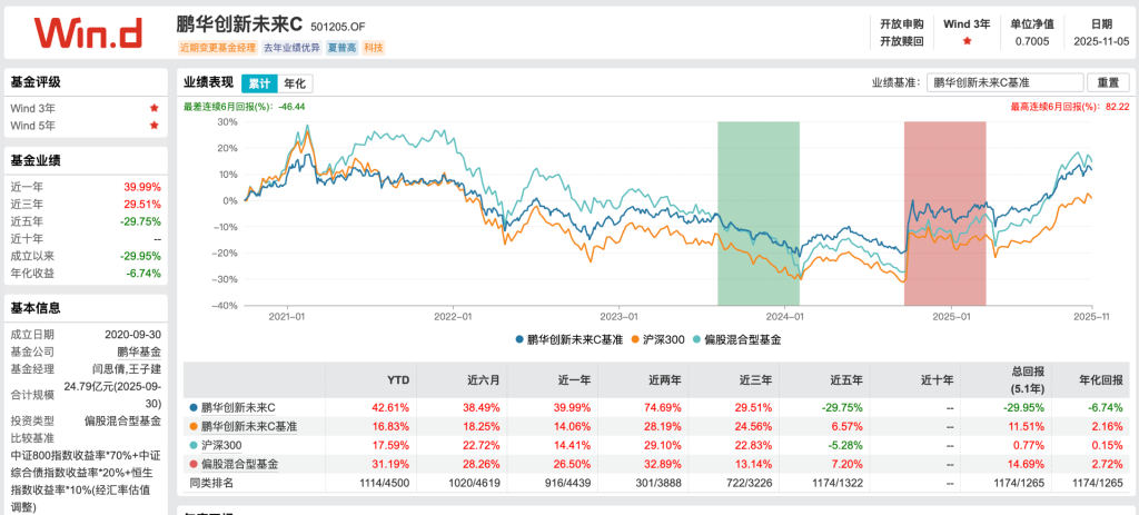 其中,鹏华创新未来为闫思倩和王子建共同管理的产品,截至11月5日,鹏华创新未来C的年内收益率达42.61%。而王子建单独管理的另一只产品——鹏华远见精选A的年内业绩为65.24%。