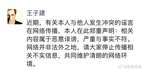 对此,鹏华基金基金经理闫思倩、王子建今日晚间分别在朋友圈澄清称:“近期,有关本人与他人发生冲突的谣言在网络传播,本人在此郑重声明:相关内容属于恶意诽谤,严重与事实不符,网络并非法外之地,请大家停止传播相关不实信息,共同维护清朗的网络环境。”