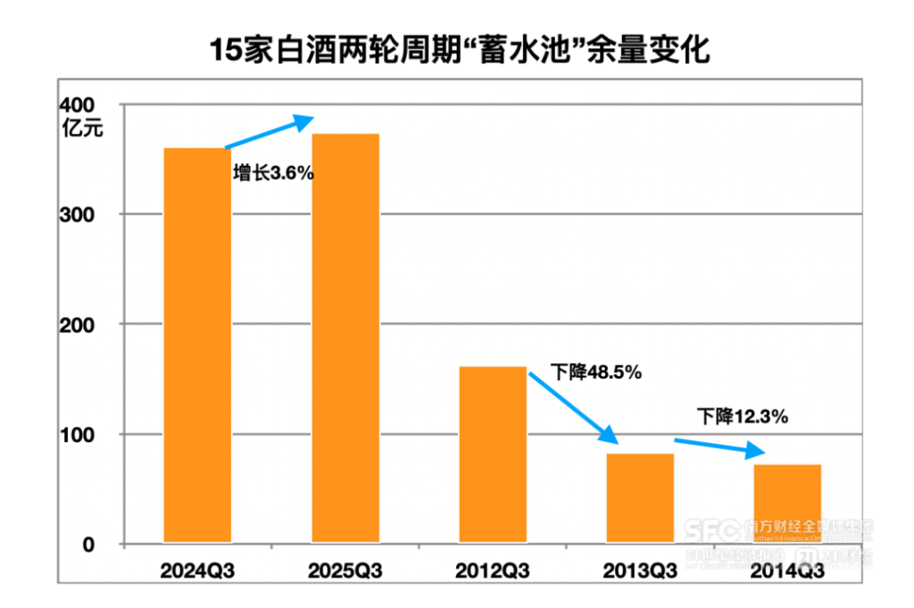 头部酒企、区域酒企无一幸免。即便是茅台“蓄水池”也大幅缩水,从2012年末的近51亿元减少至2014年末的不到15亿元。