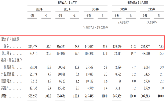 佣金压力直接推高销售开支:2024年向聚合平台支付佣金4.42亿元,占销售开支比重超七成。