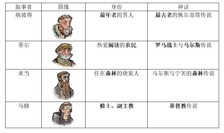 在充分讨论不变的母题之后,我们有必要将视角转向pentimento的核心内容:修饰与覆写。对应于三个版本的故事,生活在塔辛的人们为何会在不同时代的集体记忆中呈现出差异化的角色类型和叙事内容呢?这些被覆写在母题上的图层又是基于什么样的原则被涂抹的?本质上,这是对哈布瓦赫(Maurice Halbwachs)笔下集体记忆可重构性的一种回应:“过去本身在任何记忆中都不能被完全保留,留存下来的只是其中为社会在每一个时期中,借助这个时期的参照框架所能重构的部分。”[12]