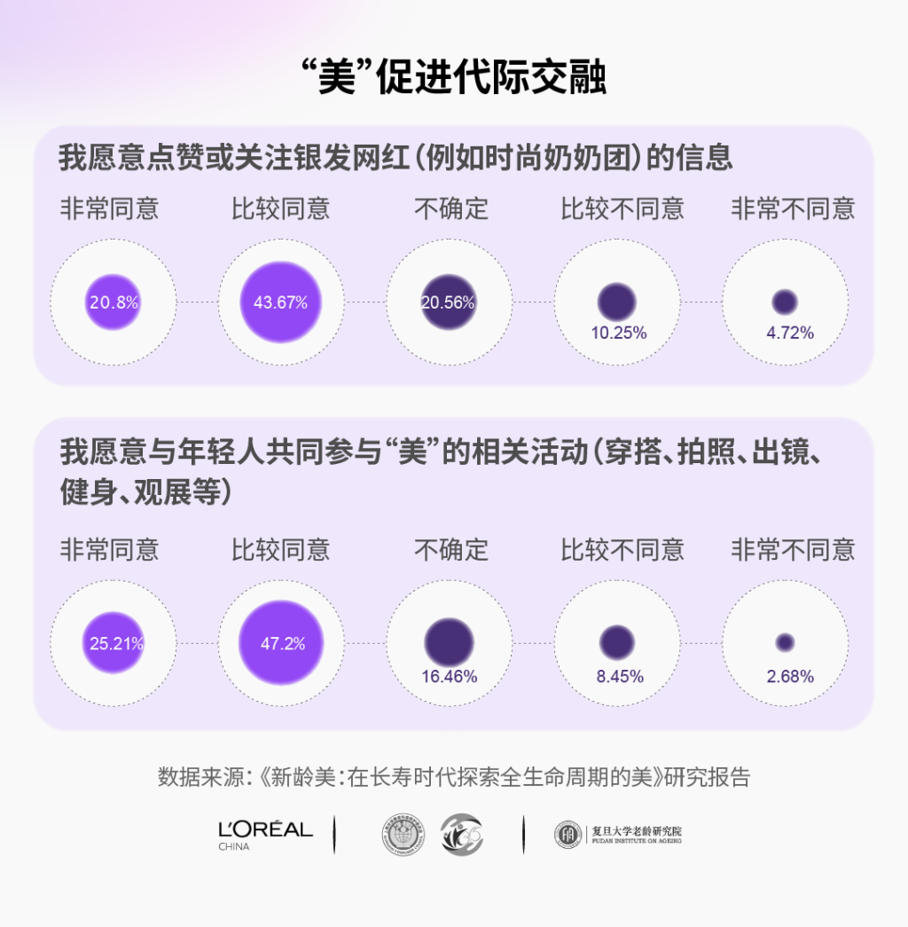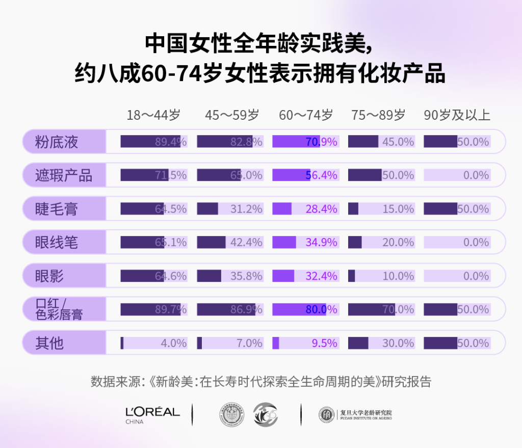为此,欧莱雅中国与上海市消保基金会及复旦老龄研究院联合开展以《新龄美:在长寿时代探索全生命周期的美》(后文简称为《新龄美》)主题的课题研究,通过科学健康、文化认知、社会经济三个维度诠释“美”如何在长寿时代,发挥积极势能与影响。