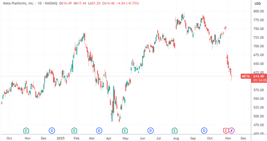 这番表态发布后,Meta的股价从751美元一路跌到600美元。周五日内一度跌超2%,但公告发布后目前收窄至1%以内。