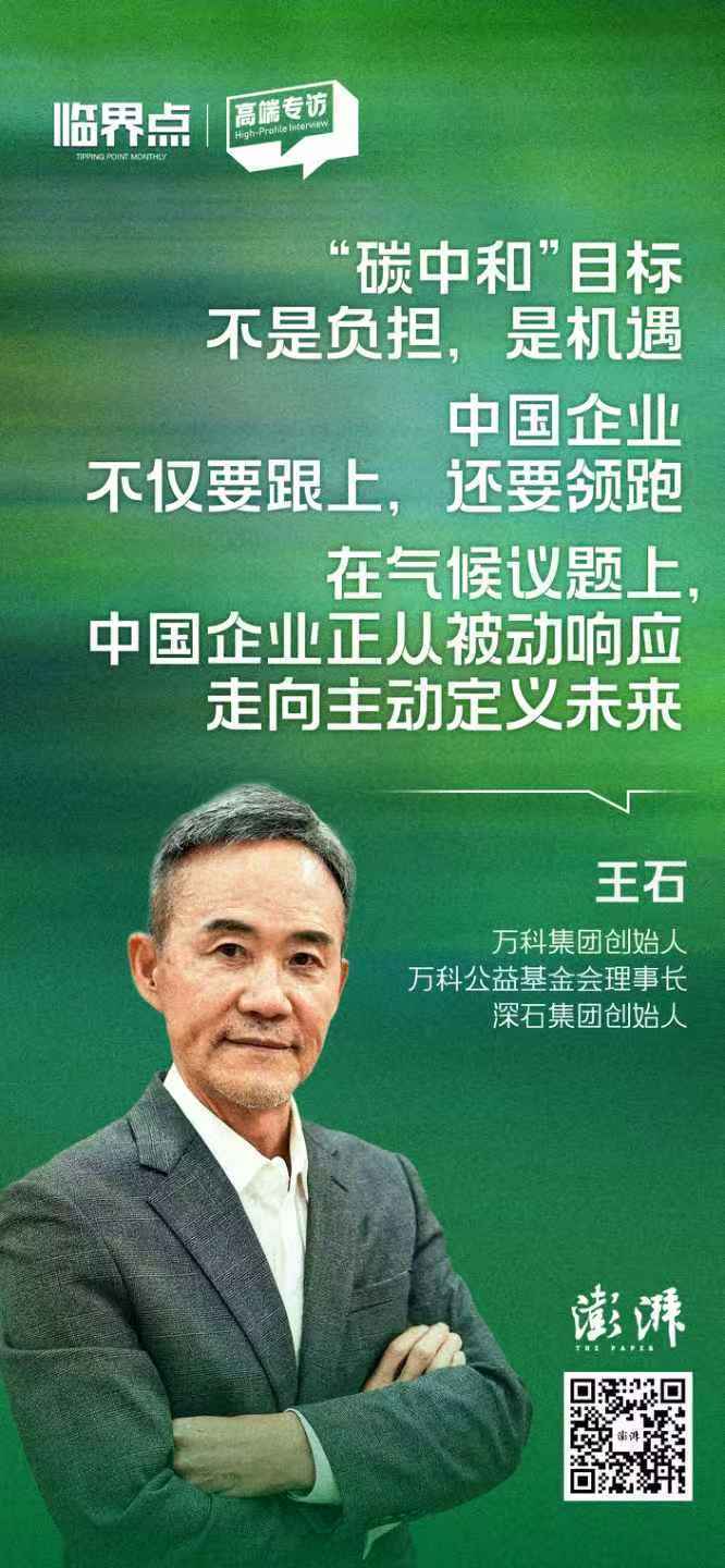 王石说:“碳中和经济时代到来了,你必须用商业模型去迎接它。”