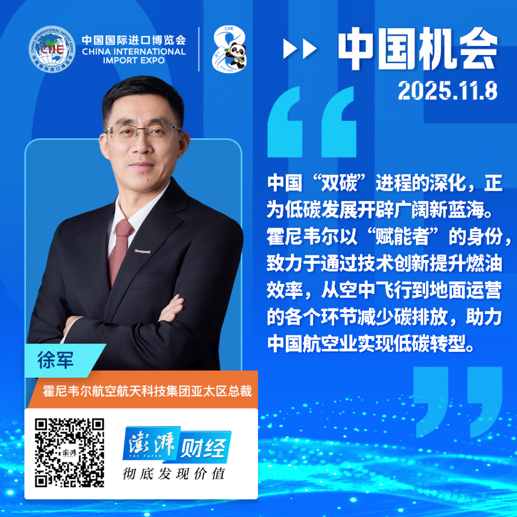 第八届进博会期间,霍尼韦尔航空航天科技集团亚太区总裁徐军在接受记者采访时指出,一直以来,霍尼韦尔不仅自身持续推进本地化发展,而且始终以技术和资源赋能中国航空业成长,同时通过与本土航司、航材提供商的合作,携手为中国民航业的进步贡献力量。霍尼韦尔既是行业发展的参与者、贡献者,也是中国航空业高速成长的受益者。