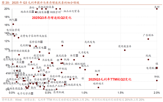 毛利率提升往往意味着行业盈利能力增强,可能是需求改善推动定价能力的提升,或是供应链优化带动成本的下降;库存增速上行,可能是企业备货以应对需求回暖,也可能是需求下滑导致库存积压。筛选毛利率和库存增速均改善的领域,结合中观景气变化,我们认为供需格局改善的细分领域集中在: