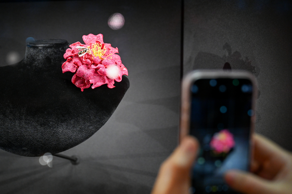 观众在拍摄V MUSE展台的珠宝。澎湃新闻记者 朱伟辉 图