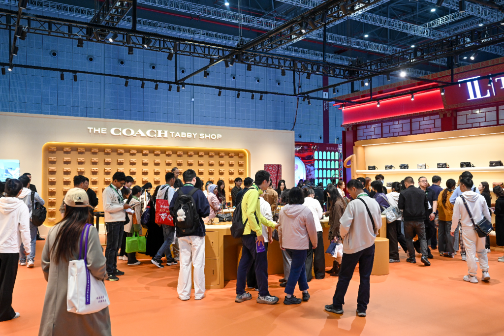 COACH连续第七年参展。本次展台以“the COACH tabby shop”为主题,携标志性Tabby系列及二十余款全球首发首展新品精彩亮相,全面呈现品牌战略在中国的落地成果,打造“真我新奢”共鸣时刻。澎湃新闻记者 朱伟辉 图