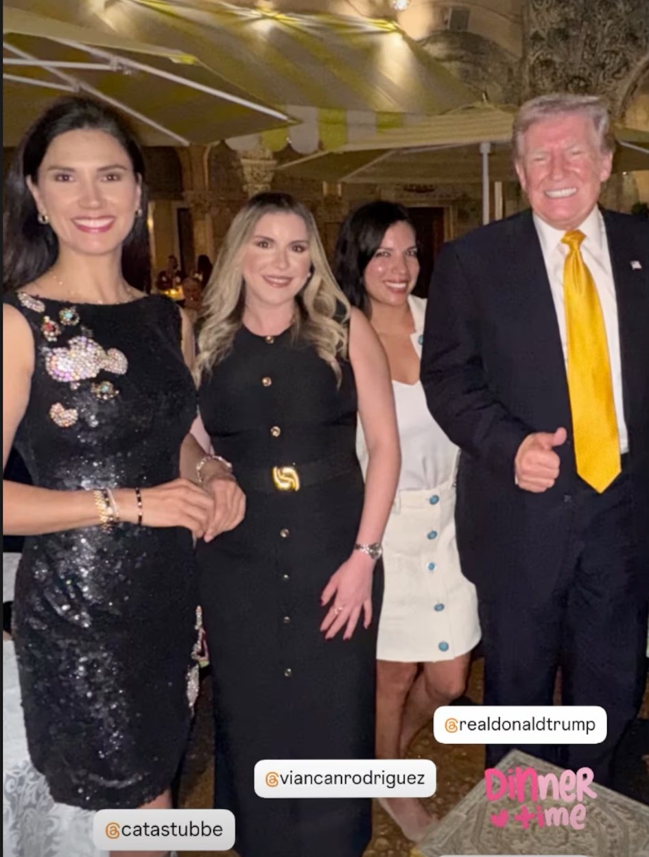 社交媒体美媒《每日野兽》注意到,宴会现场,宾客们穿着盛装,昂首阔步走过好莱坞风格的红地毯,通往特朗普位于棕榈滩的豪宅;特朗普的政治盟友、支持者和名人一同欣赏着歌剧表演。出席者包括英国极右翼政客法拉奇(Nigel Farage)、爱荷华州共和党众议员扎克纳恩(Zach Nunn)、美国男演员凯文索博(Kevin Sorbo)等。