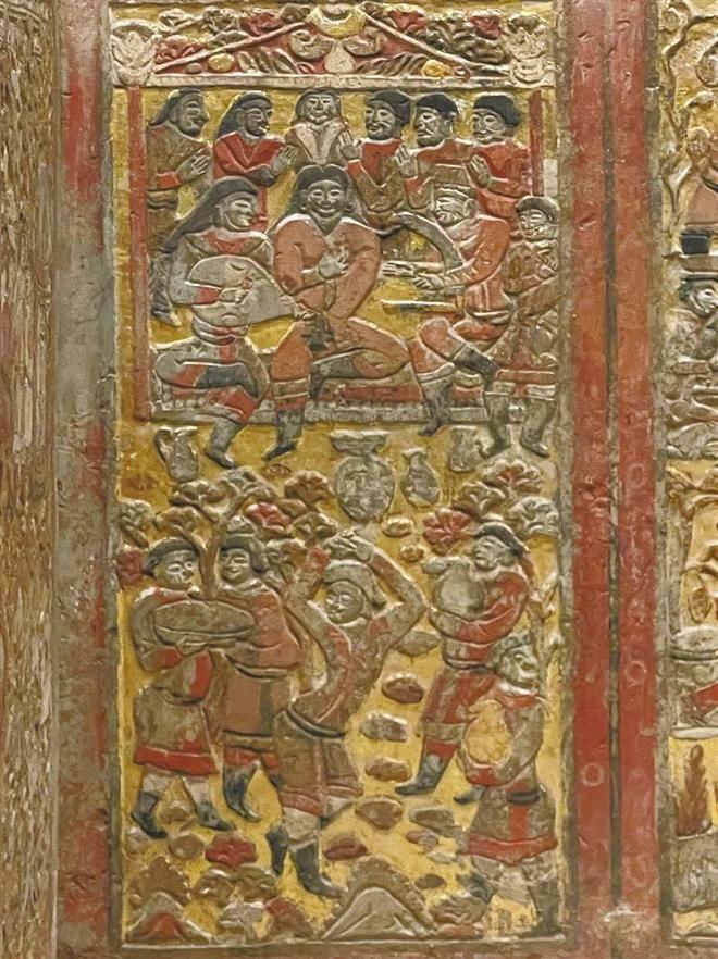 采用贴金工艺的安伽墓围屏石榻(局部)