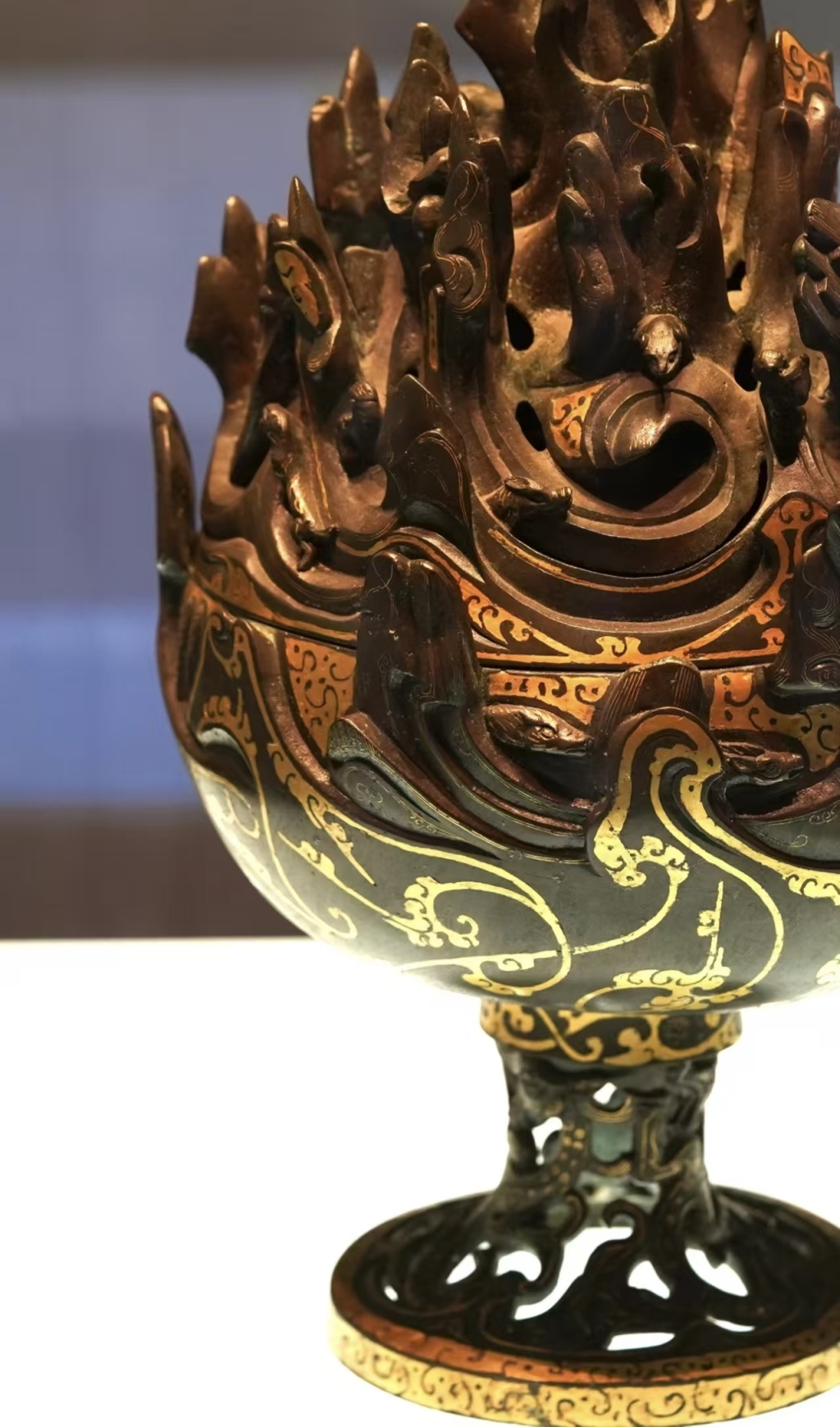 除了那些显而易见的具有“异域风情”的图像与纹饰,许多图像背后的文化象征、哲学思想和时代精神都需要放置于其所诞生的时代语境中进行分析。中国艺术研究院艺术与文献馆馆员王古今就聚焦于博山炉盖上的互搏图与牛车图像的研究,认为其具有强烈的域外文化特征。王古今谈道,博山炉的造型虽与香料使用相关,但其装饰图像如“人与兽对峙、牛车等元素”,可能源于北方草原或波斯文化,他也进一步提出,博山炉盖的设计可能模仿汉武帝时期的上林苑,是“微缩天下”观念的体现,既满足皇帝“征服天下的虚荣”,也反映了“对胡文化的吸收与重构”。这类图像随后逐渐程式化,成为“流行图式”,其早期蕴含的独特意义也在传播中逐渐消减。