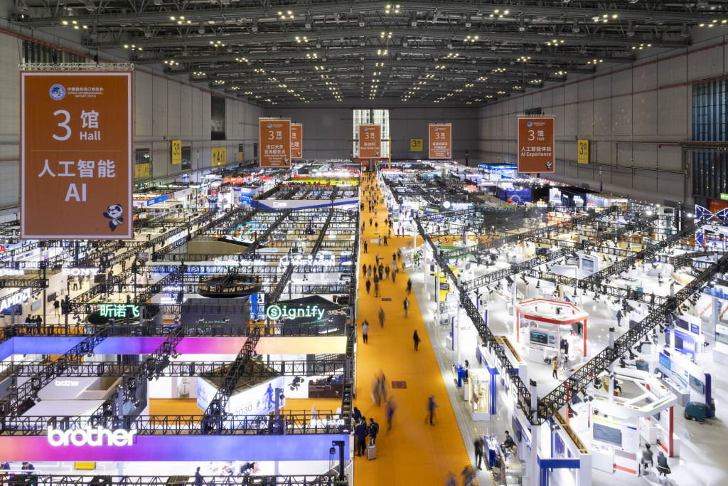 2025年11月10日,人们行走在国际会展中心(上海)内。 新华社记者 王婧嫱 摄