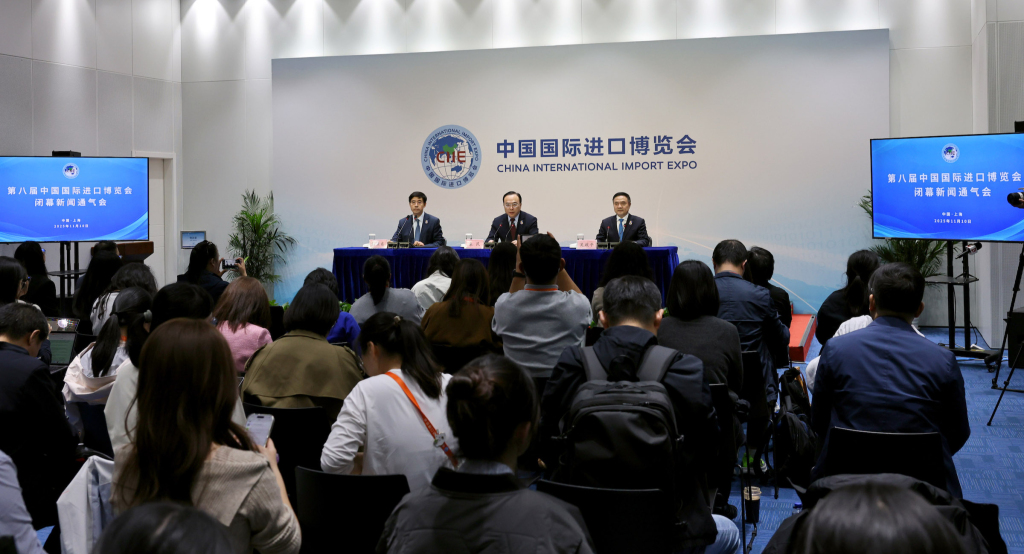 2025年11月10日,第八届进博会闭幕新闻通气会现场。新华社记者 方喆 摄