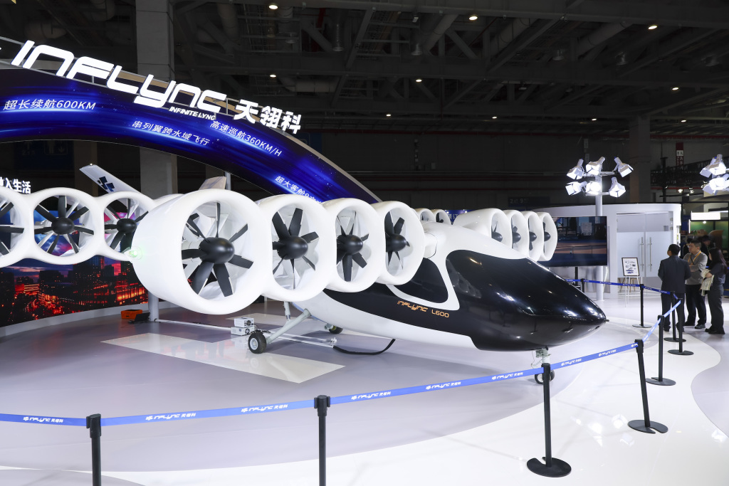 2025年11月8日,在第八届进博会汽车及智慧出行展区天翎科展位拍摄的电动垂直起降飞行器。 新华社记者 王翔 摄