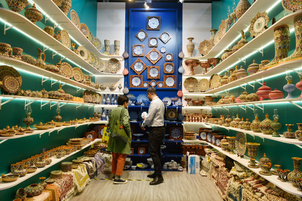2025年11月5日,在第八届进博会消费品展区拍摄的来自伊朗的陶瓷制品。 新华社记者 鲁鹏 摄