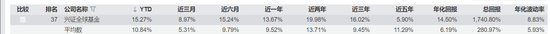 兴证全球基金各阶段业绩排名却不及规模表现,整体收益率排名第37位。其中,近1年、近2年、近3年收益率分别为13.67%、19.98%、16.02%,三个阶段均跑赢同类平均,不过近5年收益率5.9%,未跑赢同类平均的11.29%。