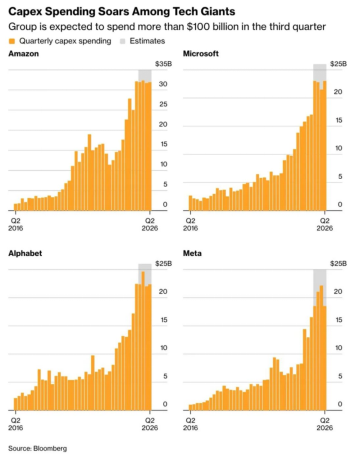 微软刚结束的财季资本支出达349亿美元,同比+74%,远超市场预期的300亿美元,并指引下一财季(FY26Q1)超过300亿美元,年化后有望达到1200亿美元规模。
