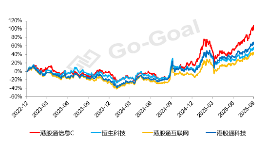 从指数回报来看,2022年12月30日至2025年9月30日期间,港股通信息C指数累计涨幅达110.93%,显著超越恒生科技、港股通互联网、港股通科技等港股科技类指数。
