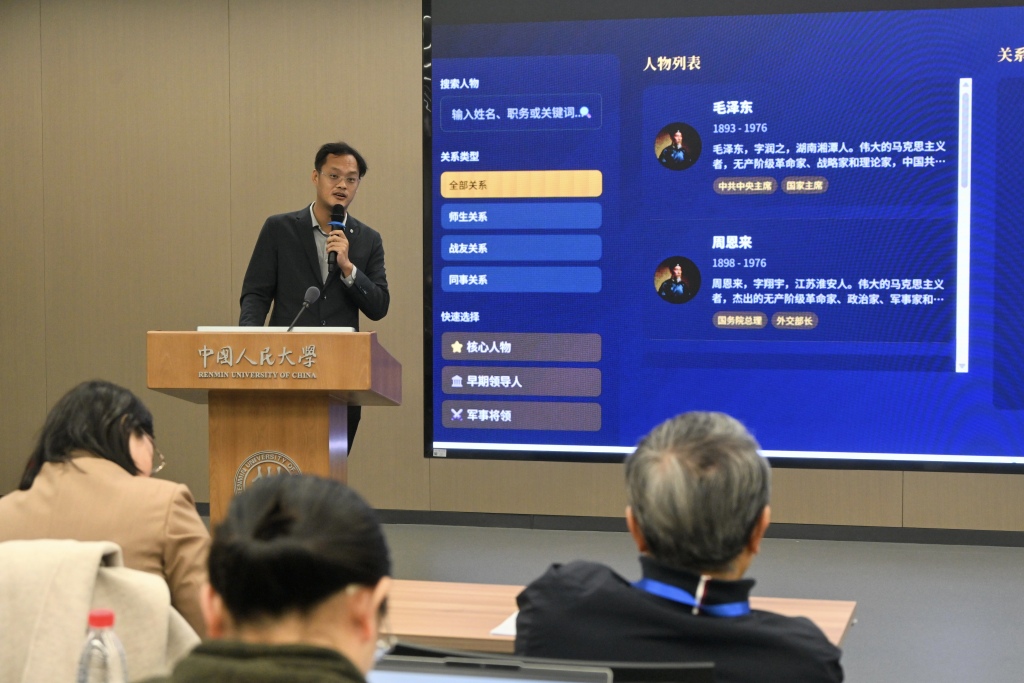 岳文玉(中共福建省委党校)基于党史知识图谱的创新探索,为党史研究的数字化转型提供重要参考。孙雅馨(北京大学图书馆)以北京大学图书馆特藏文献为例,提出革命文献智能化建设的开放设想。李磊(南京大学历史学院)讨论数智时代对党史研究范式、方法与史料处理方式的系统性重塑,强调“数字认知”与“历史认知”双向验证的必要性。刘俊晖(中国人民大学历史学院)运用社会网络方法分析蒋介石电报文书,有效揭示了其政治网络的特征。评议人薛勤(华中师范大学马克思主义学院)在总结报告亮点的基础上,为各研究进一步深化指明了方向。