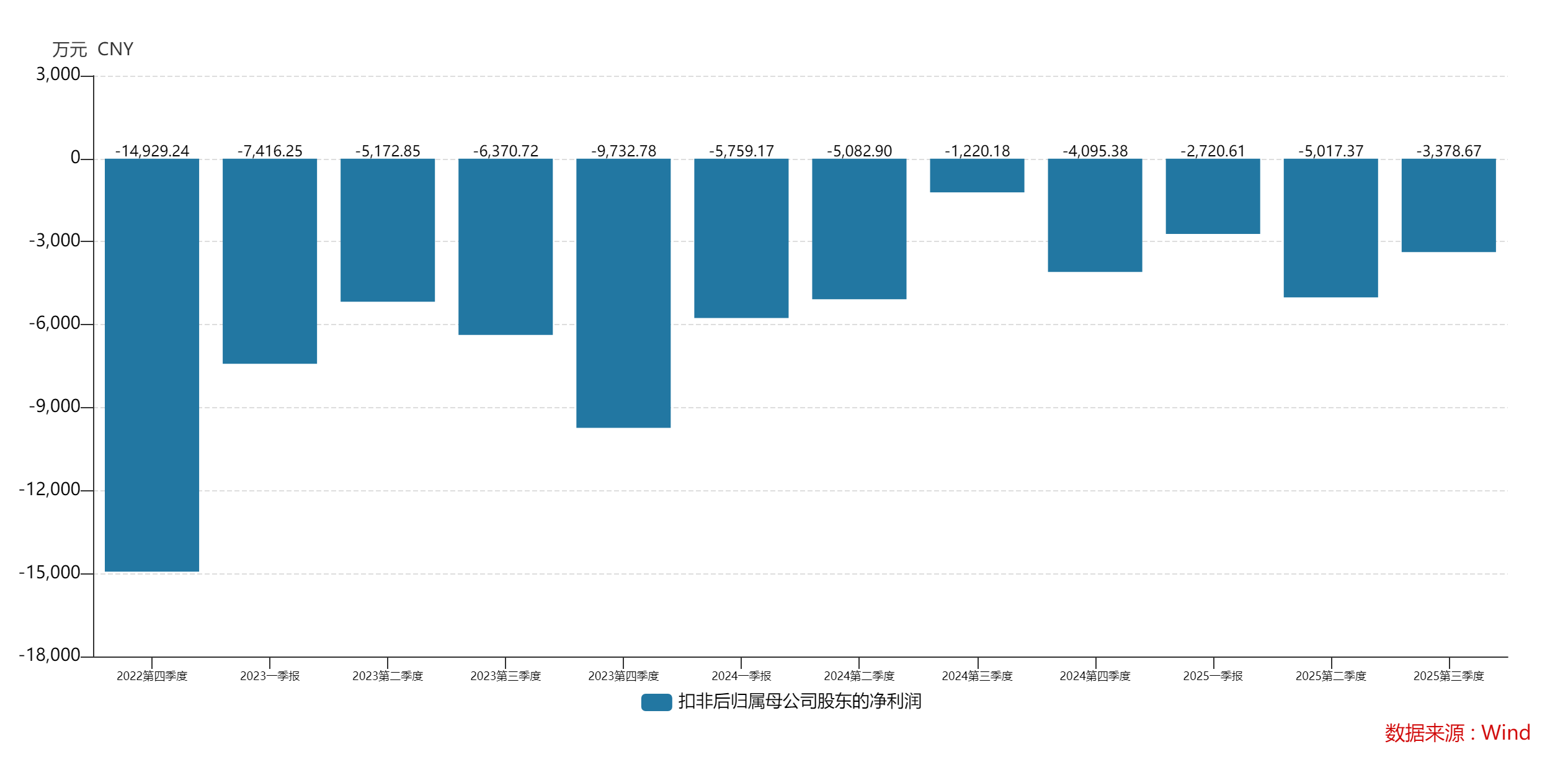 2022 年前三季度,公司营收 37.5 亿元,同比微增 0.21%,成为其营收增长的 “分水岭”。此后,公司营收进入持续下滑通道:2023 年前三季度营收 29.32 亿元,同比下滑 22%;2024 年前三季度营收 26.37 亿元,同比再降 10%;2025 年前三季度营收进一步跌至 25.55 亿元,同比下滑 3.14%。短短三年间,公司前三季度营收缩水超 12 亿元,降幅达 32.3%。