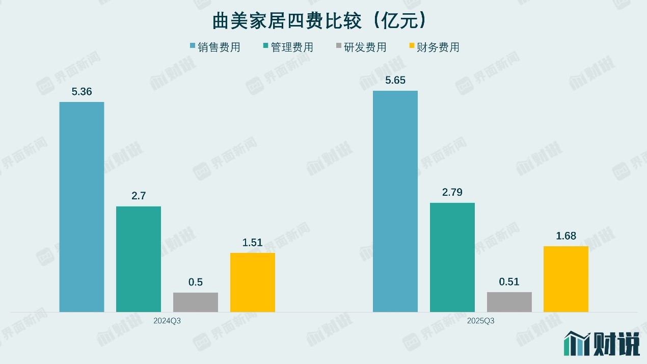 曲美家居曾提到 “大力推动降本增效工作”,包括优化资源投入、调整人力成本结构、提升人效等,但从费用数据来看,降本增效的效果尚未显现,公司前三季度的四费同比全部增长。