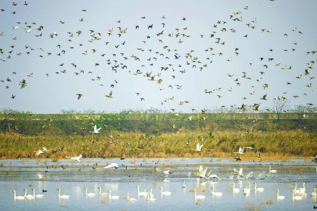 东滩湿地候鸟翔集。 刘龙基 摄
