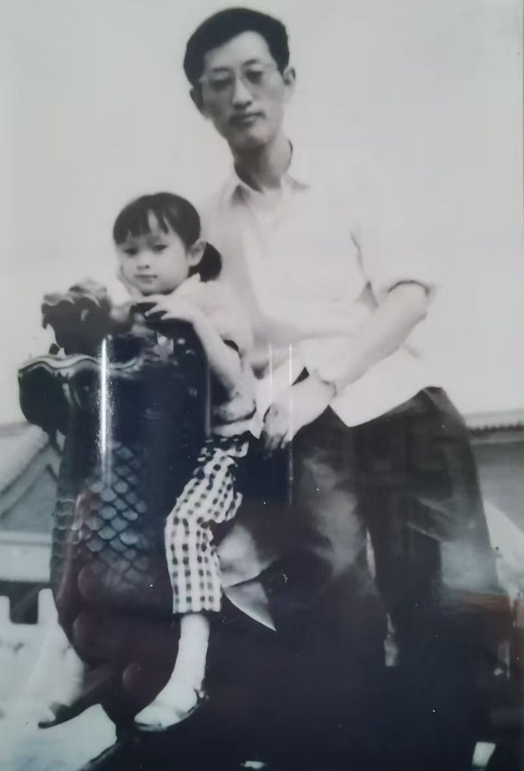 吴颐人带儿童时的吴越在公园游玩时的合影