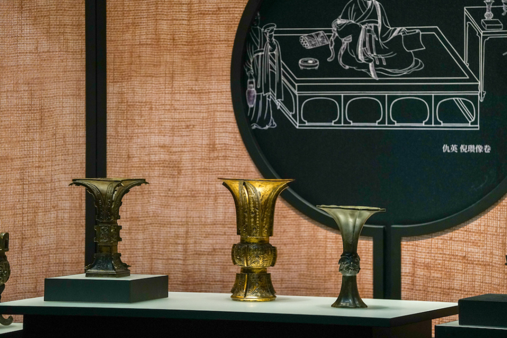 展览分成4大单元,第一单元“崇古尊古、再塑三代”聚焦于宋徽宗与清高宗的礼制改革与儒学祭器的仿古实践;第二单元为“铸古维新、自成一格”是解析商品经济驱动下仿古铜器的功能转化,借由炉、瓶、壶这些生活器物呈现艺术审美与实用功能的融合创新;第三单元“永宣垂范、震古耀今”以“永宣金铜造像”与“宣德炉”为核心,剖析明代官造铜器在铸造工艺与艺术范式上的突破性成就,第四单元“起居修道、古铜新意”则关注仿古铜器的世俗化进程,通过佛道仪轨贡具和文人书斋雅玩,勾勒出跨阶层、跨信仰的文化互动图解。