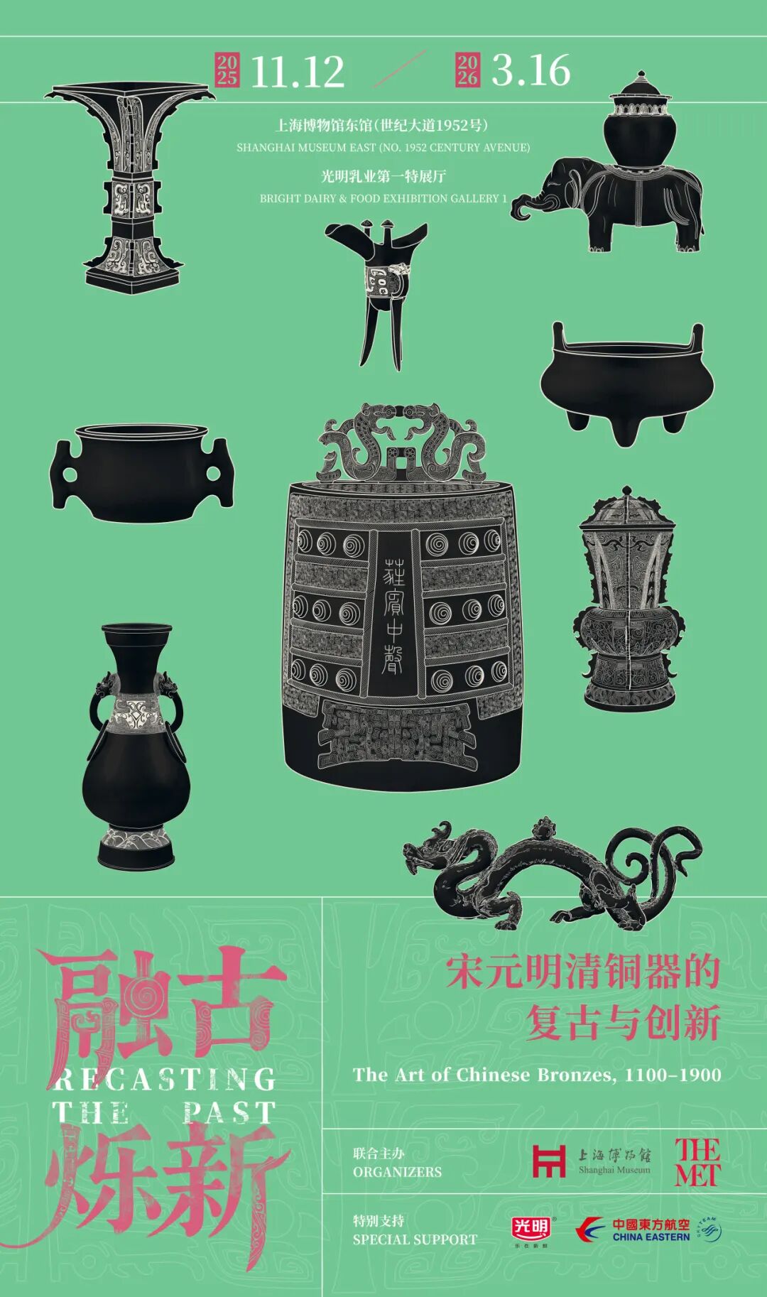 据悉,展览基于上海博物馆藏宋、元、明、清铜器,并携手大都会艺术博物馆,汇集亚、欧、美三大洲多家重要博物馆馆藏,辅以同时期书画、陶瓷、珐琅器等,是近年来海内外最具规模的宋、元、明、清铜器展,着重解答仿古青铜器为何在宋代出现?为何持续流行于元、明、清各朝?仿古青铜器的流行与发展蕴含着哪些社会意义等一系列问题,让人们重新认知宋元明清铜器未被重视的艺文魅力。