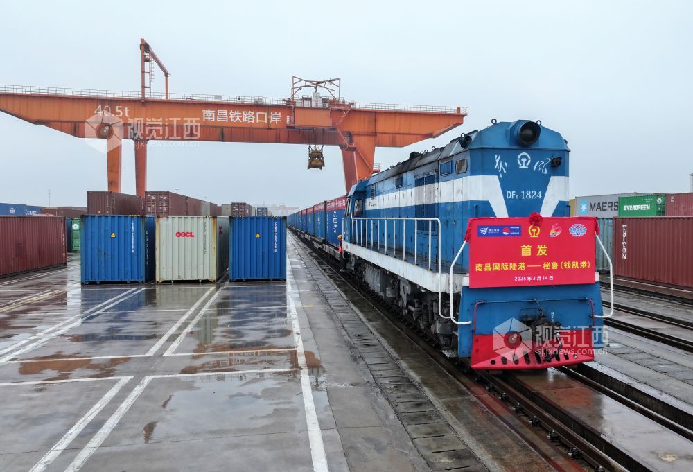 南昌至秘鲁铁海联运班列首发(陈良帅 冯尧 摄)