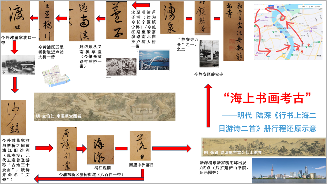 而今,高架、地铁取代了水路,往日水乡景象一去不返,幸有书画诗文得以传世,让我们能通过一件件文物,在城市更新的地层中来一场“书画考古”,实现当代与传统的链接,让城市山林可居可游。山河变迁,文化记忆永存,更是海派文化探源研究、海上千年“人文可阅读”之重要实证。