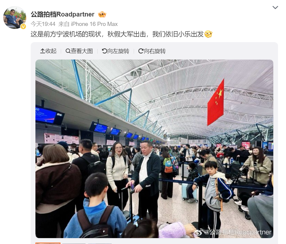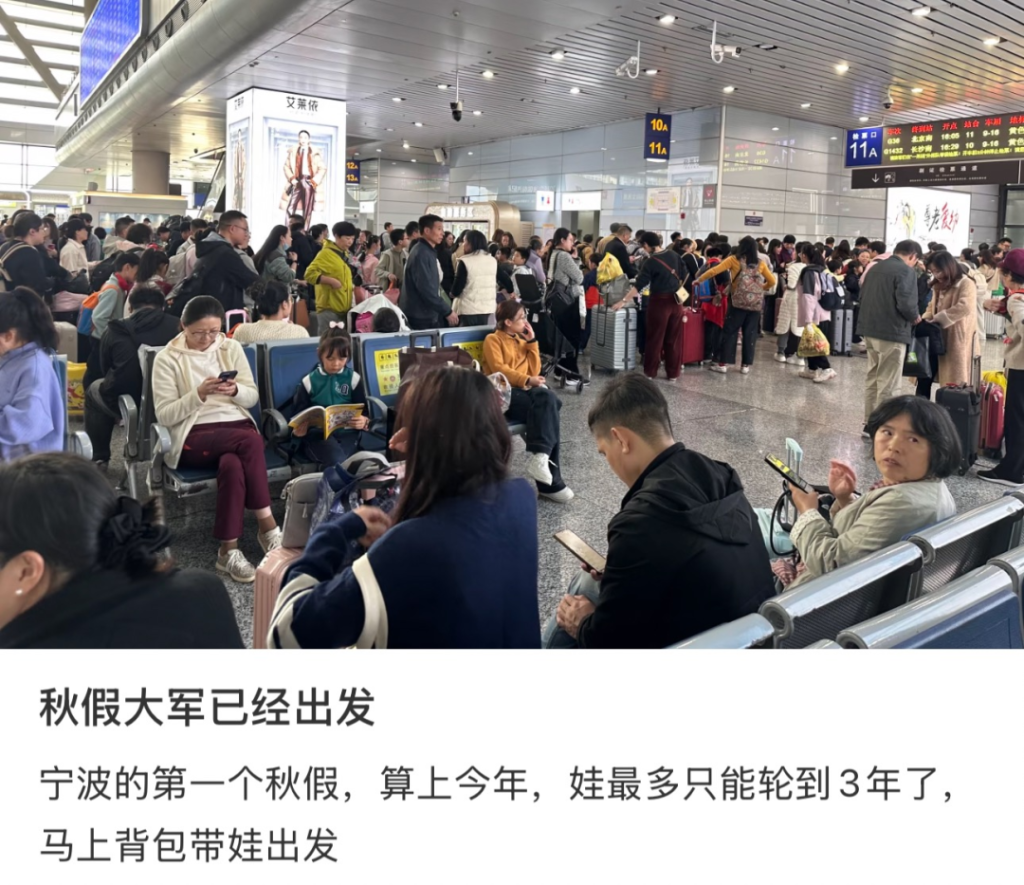 12日是浙江省秋假的第一天,浙江网友纷纷在朋友圈、小红书、微博等社交媒体上晒出假期生活。综合潮新闻、钱江视频报道,11日晚,宁波栎社国际机场里,背着书包、拖着行李箱的中小学生家庭明显增多。出发大厅随处可见孩子们推着行李箱的身影,脸上写满对假期的期待,更有小朋友兴奋地推着箱子“滑”行。