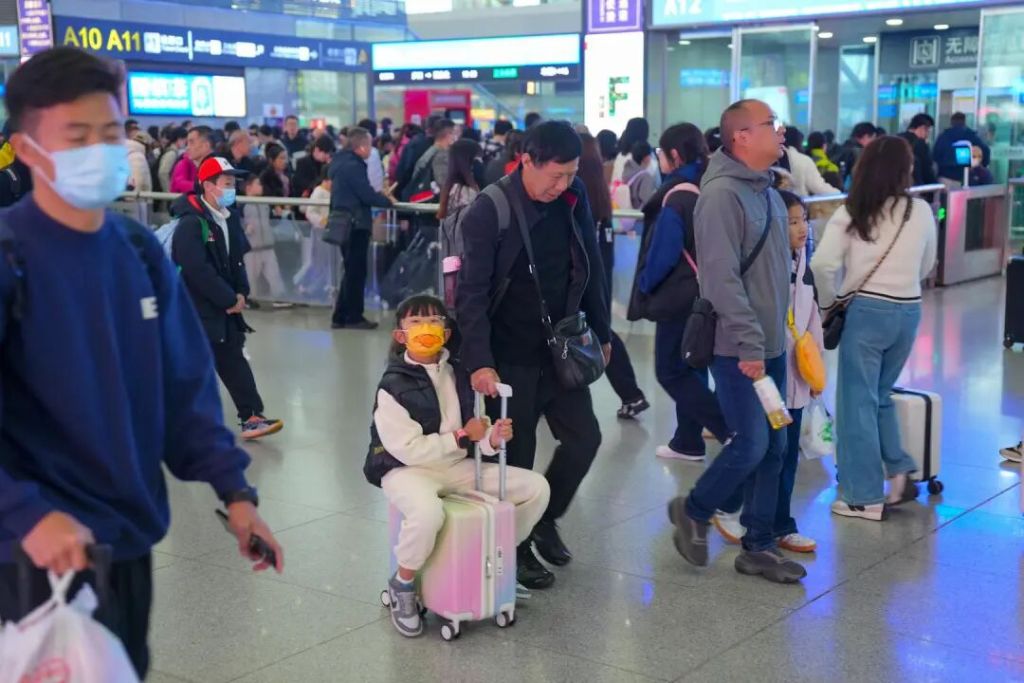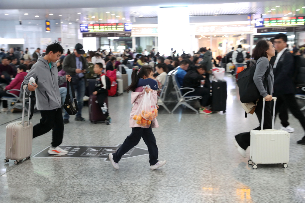 11月12日,成都火车站,家长带着孩子出行。成都商报 图