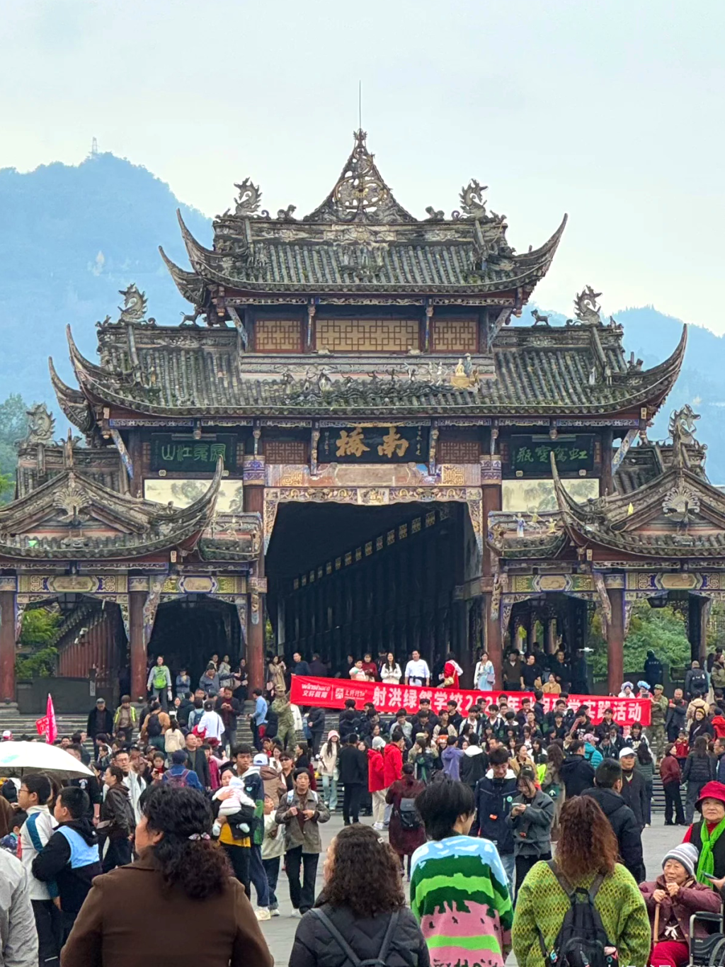 11月12日,秋假首日,都江堰景区人山人海,部分学校利用秋假开展研学实践活动。@Q的山野漫游 图
