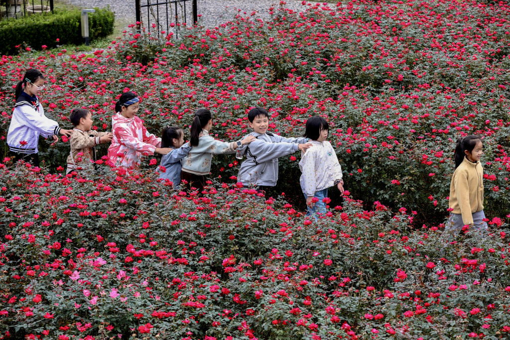 11月12日,浙江湖州市德清县,一群趁着秋假走出课堂的中小学生来到象月湖度假谷研学。视觉中国 图