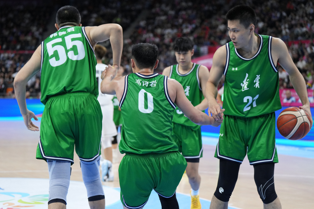 五个月后,辽宁队在全运会上60比81不敌以广厦男篮为班底的四川队,也没能在全运会的舞台上继续卫冕。但这一次,韩德君笑着和胡金秋拥抱,然后把队伍召集在一起,最后一次带领全队一起呐喊。离场时经过球员通道,韩德君抬头向球迷挥手致意,看台上穿着各种球衣的球迷也纷纷与他挥手道别。
